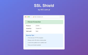 SSL Shield é uma extensão gratuita para o navegador Chrome que permite verificar instantaneamente a segurança de qualquer site. Com essa ferramenta, o usuário pode checar se um site utiliza a criptografia HTTPS, visualizar detalhes do certificado SSL e obter indicadores de status de segurança em tempo real. A interface simples facilita a identificação de conexões seguras, mostrando o tipo de protocolo, validade do certificado e informações do emissor.